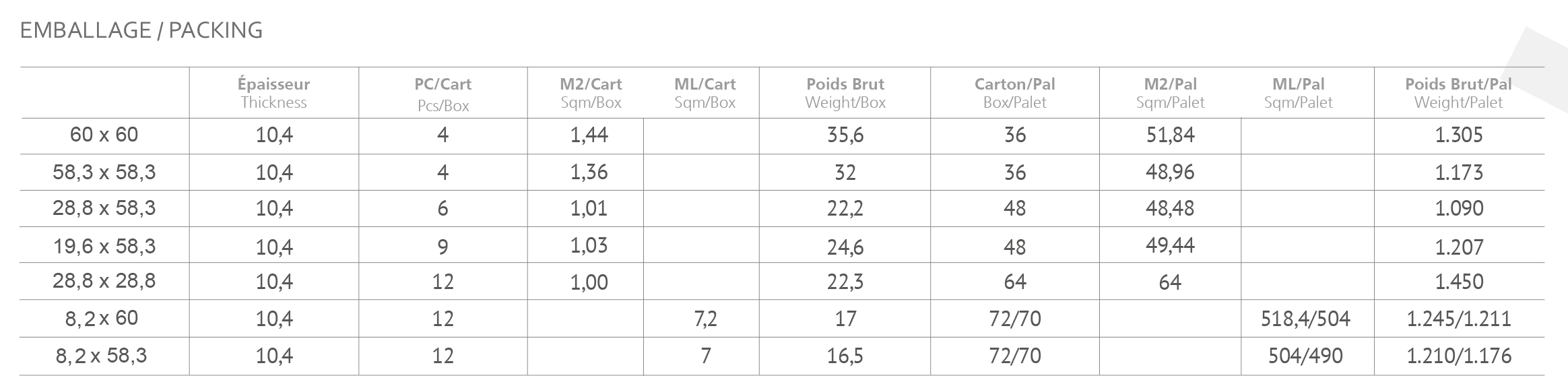 Evasion Mate Dure Gris 19,6×58,3 cm